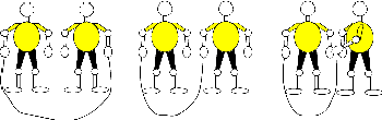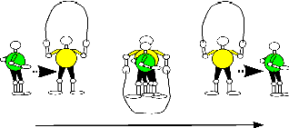 - Jumper jumps over the rope as it hits the floor (= entrance) and jumps out the next time the rope hits the floor (= exit).